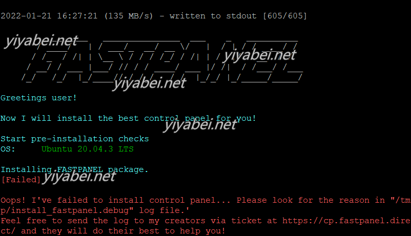 没错,鄙人在这一步卡了将近1个多小时,重装了系统多次,反复update和upgrade,最终的结果都是这样。如果你访问他提示的错误日志:/tmp/install_fastpanel.debug,你得到的信息将会是: